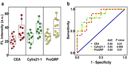 我实验室DNA组研制一种基于微阵列的外泌体分离和多重肿瘤标志物检测方法。捕获外泌体的微珠被均匀排布在微柱之间,避免了光学干扰,使测试结果更加准确。不同类型的肺癌外泌体样品显示出独特的标志物表达水平。