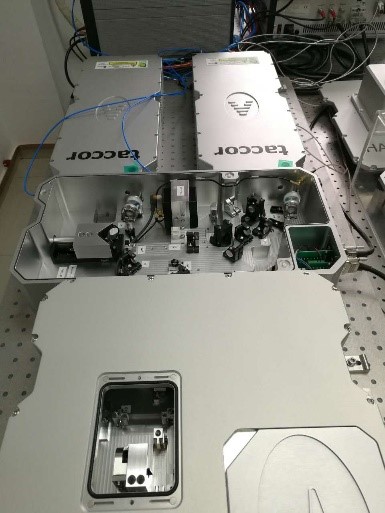 实验室完成了THz异步光学扫描光谱系统的构建、安装与调试工作,光谱系统如图所示。该系统工作原理为采用两束具有一定频差的飞秒激光器实现THz时域脉冲信号的采样功能,然后经过傅里叶变换的大样品的频谱信息。主要应用于各类物质的THz透射光谱测试,该系统特点在于可实现1GHz的光谱分辨率,该性能指标由于普通的TDS系统(>5GHz),频谱范围可达6.5THz,单次扫描时间0.5s,可实现准实时光谱测试,同是系统配备反射模块,也可用于物质的ATR光谱测试工作,完善了实验室的测试功能条件,对THz光谱技术的研究具有十分重要的作用。