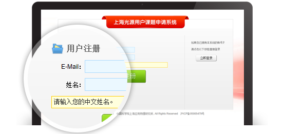 课题申请人如果没有上海光源网站用户账户,请同时在http://user.ssrf.ac.cn/proposals/注册账户,该账户用于后续实验的具体安排 (中国科学院重大科技基础设施共享服务平台账户仅用于课题申请)。注:2021年3月后将完成系统升级,申请流程将有所变动。