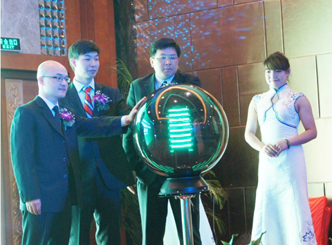 上海新池能源总经理施建中先生(左一)参与产品发布会启动仪式