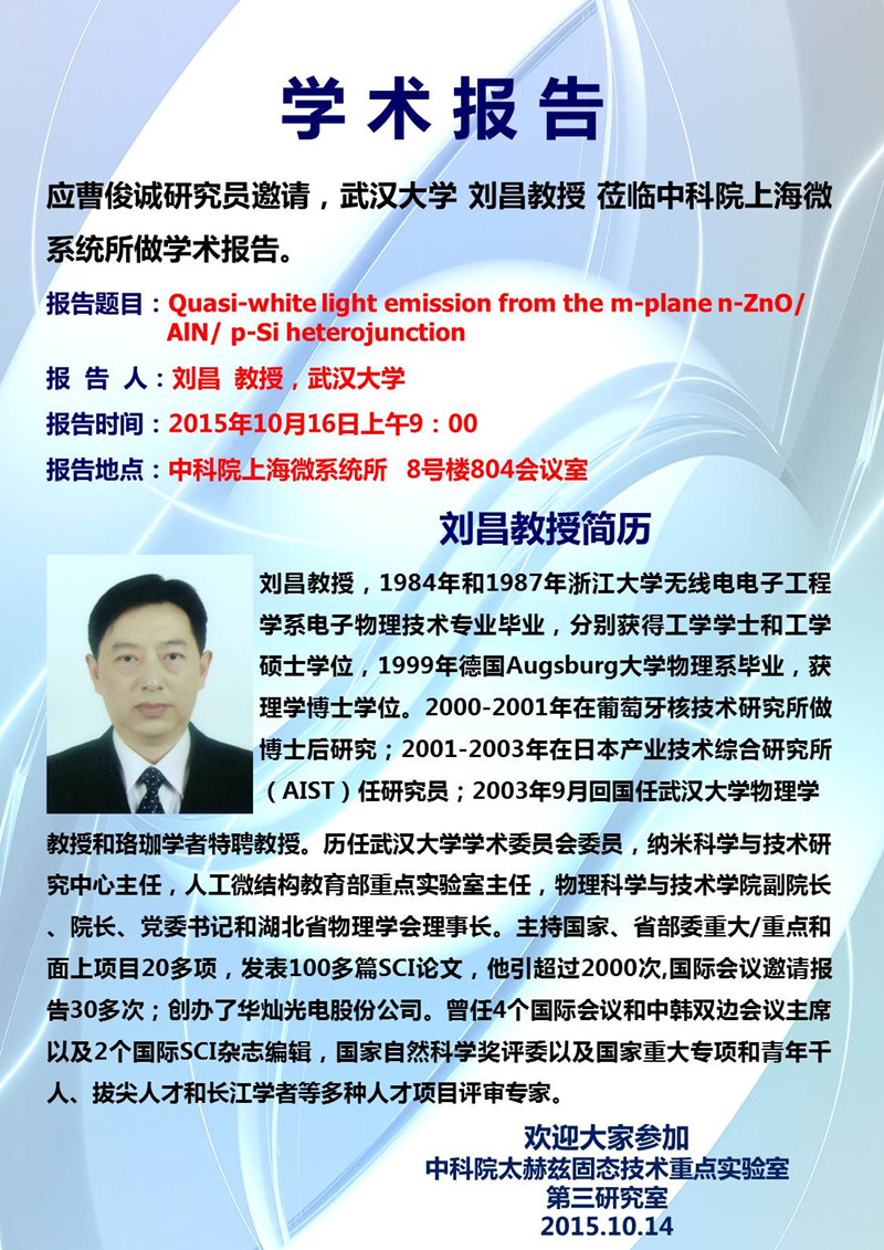 (10月16日上午9:00)三室学术报告 长宁园区8号楼804会议室