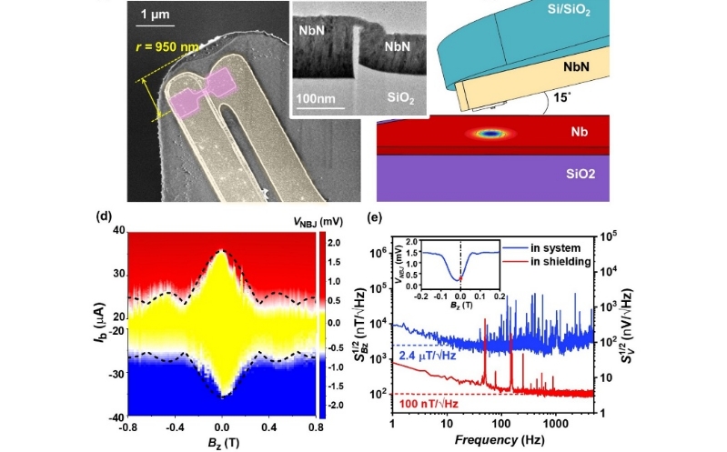 近日,中国科学院上海微系统与信息技术研究所张露副研究员、陈垒研究员团队在低温磁成像技术领域取得重要进展。团队成功研制出基于超导氮化铌(NbN)材料和三维纳米桥结构的新型磁显微探针,将超导量子干涉器件(SQUID)类扫描磁显微技术的空间分辨率提升至80纳米,为量子材料与器件的研究提供了新的有力工具。该成果已发表于学术期刊《ACS Nano》(论文链接:https://doi.org/10.1021/acsnano.5c06397)。
