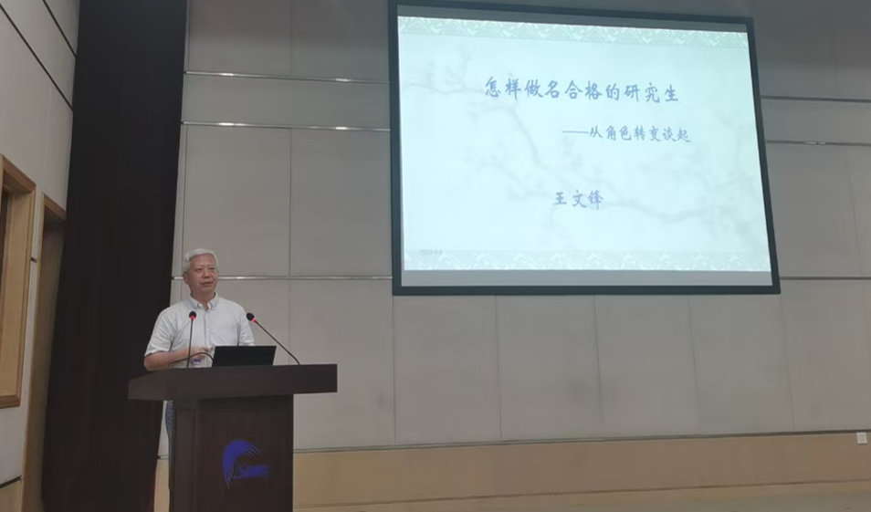 中国科学院应用物理研究所王文锋研究员以 “从角色转变谈怎样做好一个研究生”为题,详细介绍了研究生教育的定位、研究生需要具备的基本素养以及成为一名合格研究生的重要法则等,希望大家要明确学习目的、注重能力和素质培养,并预祝同学们圆满完学业。