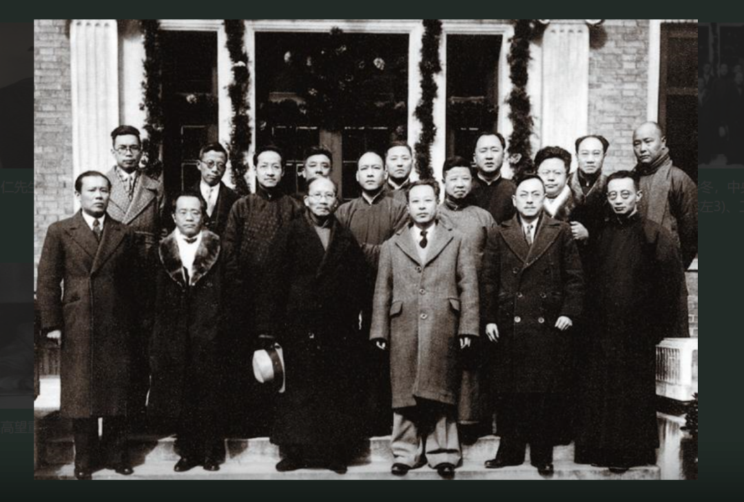 国立中央研究院院长蔡元培、工程研究所所长周仁等在工程研究所办公楼前合影(第一排左三蔡元培,右二周仁)