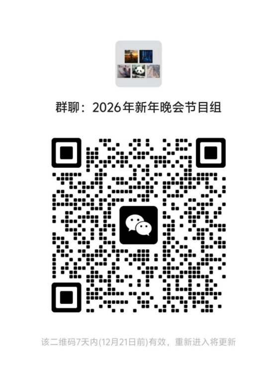 1、加入 “2026 迎新晚会节目组”(进群标明“单位/科室-姓名-联系方式”)
