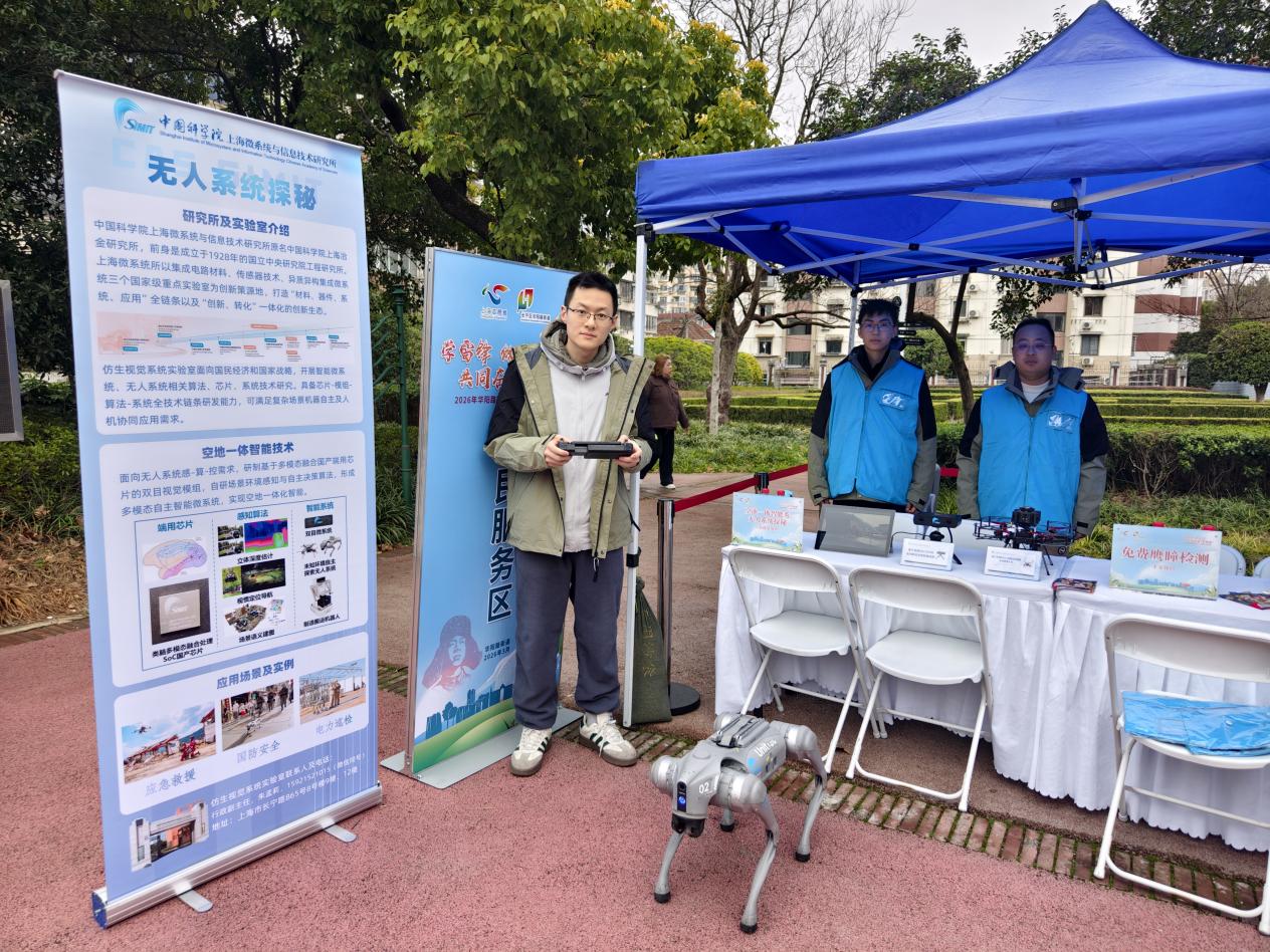 35日,在第63个学雷锋活动日到来之际,上海微系统所的“特殊”志愿者——智能机器狗与无人机,走进华阳路街道举办的“学雷锋 做志愿 共同奋进‘十五五’”学雷锋主题活动现场。这些来自仿生视觉系统实验室的“高科技宠儿”平日多在展台上亮相,今天却“走下展台”,走进社区,以满满的科技感为传统志愿服务注入全新活力。